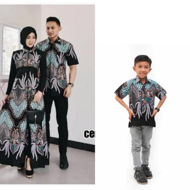 Model : Couple Batik Keluarga yang terdiri dari Gamis Dewasa, Kemeja Lengan pendek dewasa dan anak